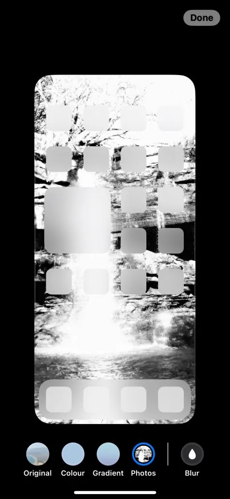 - 新しい写真を選択します。必要に応じてぼかし効果を有効にします。画面右上の「完了」をタップします。